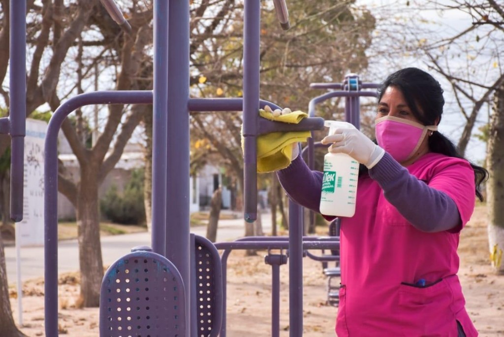 Pavani solicitó a los vecinos que al momento de realizar actividades físicas “lleven su alcohol en gel, barbijo y un paño para hacer su propia limpieza de los aparatos”, aunque aclaró que “el personal de salud de la Municipalidad y nuestros profesores van a tener los vaporizadores con alcohol para asistir y cuidar al vecino”.