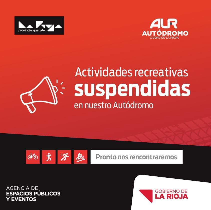 Igualmente, el ambito deportivo motor se sumó a estas decisiones, donde la Asociación Riojana de Pilotos de TC47, fueron los que tomaron la posta y frenaron los entrenamientos del ovalo de La Cañada, que estaba previsto para el sábado 8 de agosto, suspendiendo todo para el sábado 5 de septiembre.