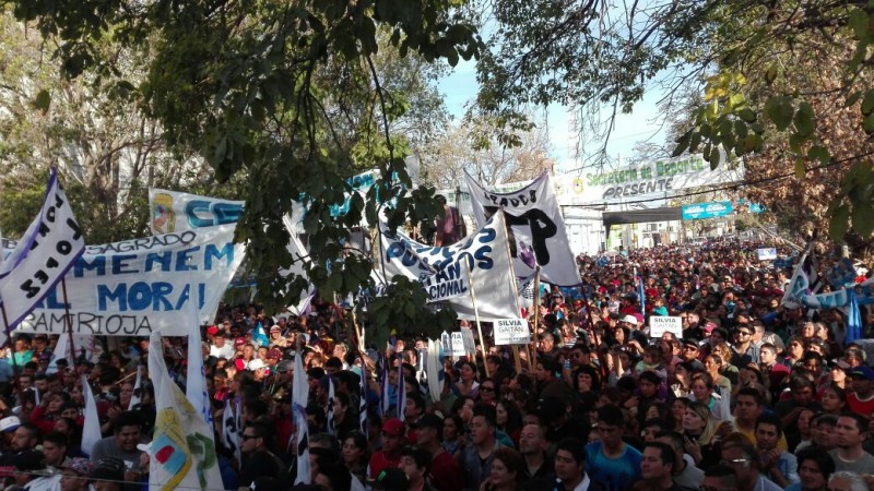 Con un multitudinario acto en la avenida Perón de la capital riojana, el Partido Justicialista realizó un energico repudio a lo determinado por la Cámara Nacional Electoral quien impugnó la candidatura de Carlos Menem. El gobernador Casas y el diputado nacional Beder Herrera cargaron duramente contra el gobierno nacional y el referente local Julio Martínez.