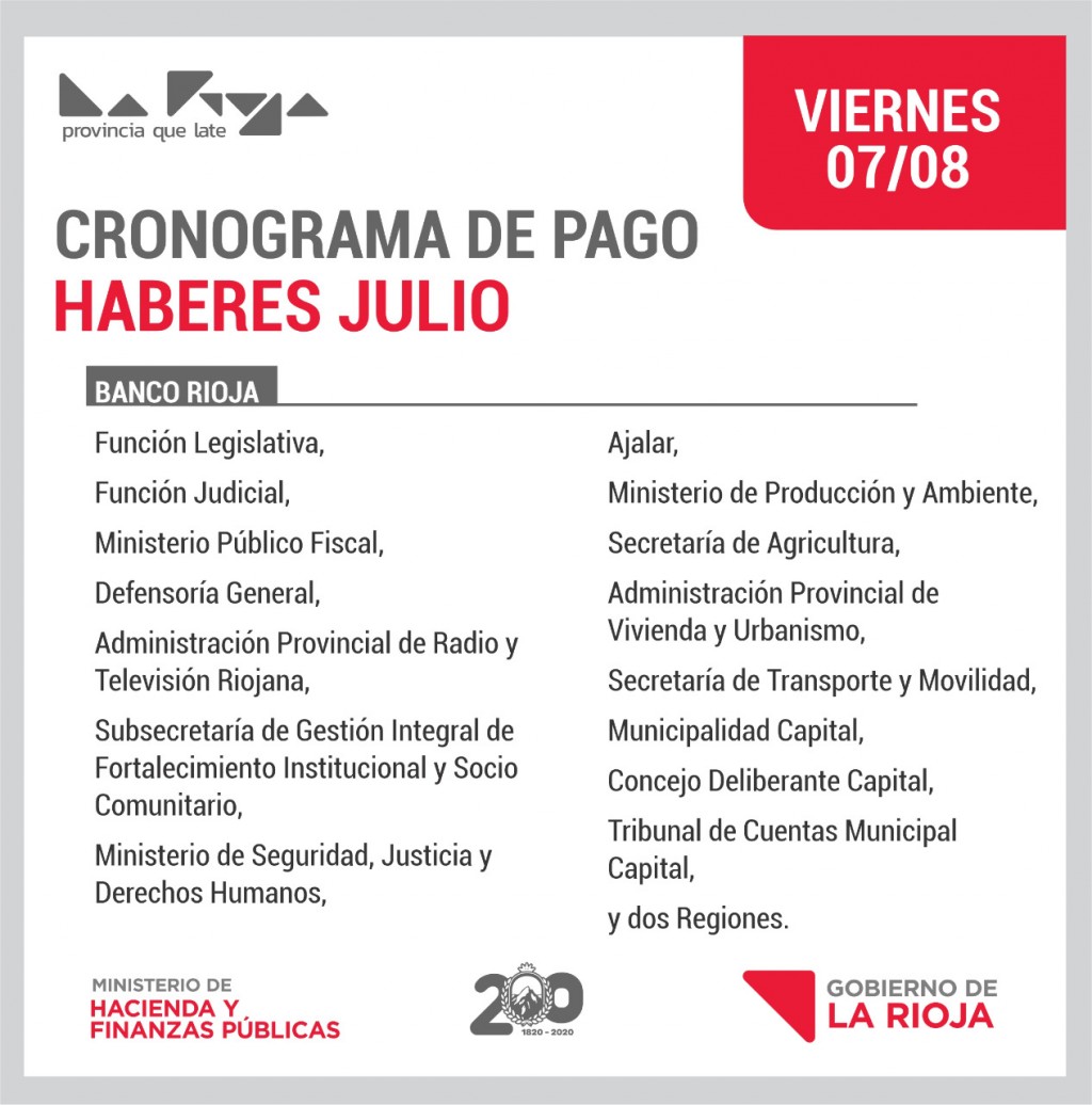 El Gobierno Provincial, a través del Ministerio de Hacienda, informó el extenso cronograma de pago de sueldos del mes de julio a trabajadores de la APP y municipios.