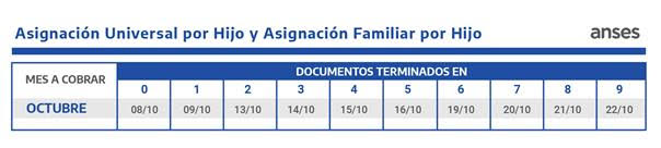 Calendario de Pagos de ANSES correspondiente a octubre