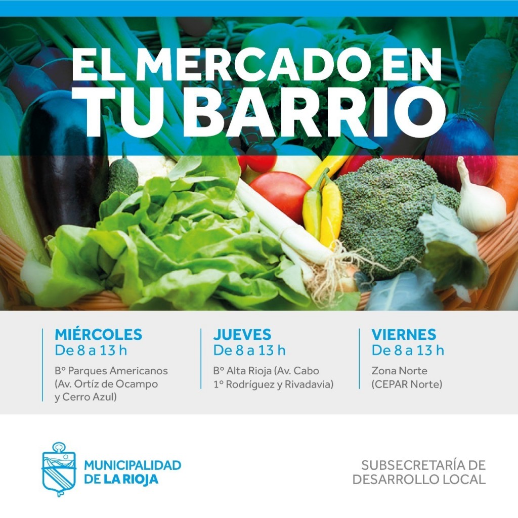 La Municipalidad de La Rioja, a través de la Subsecretaría de Desarrollo Local, informó que a partir de este miércoles 30 de septiembre se reanuda el programa “El Mercado en tu Barrio”.