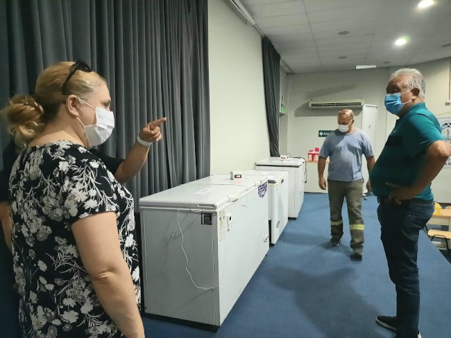 En la mañana de este sábado, la directora médica del Hospital Escuela y de Clínicas “Virgen María de Fátima”, Roxana Khairallah, recibió al ministro de Salud de la Provincia, Juan Carlos Vergara, con el objetivo de ultimar detalles para el comienzo de la campaña de vacunación contra el Covid-19.