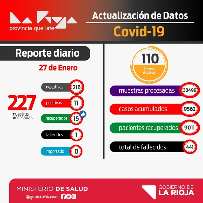 Informe Covid-19: Este miércoles se registraron 11 casos positivos en La Rioja