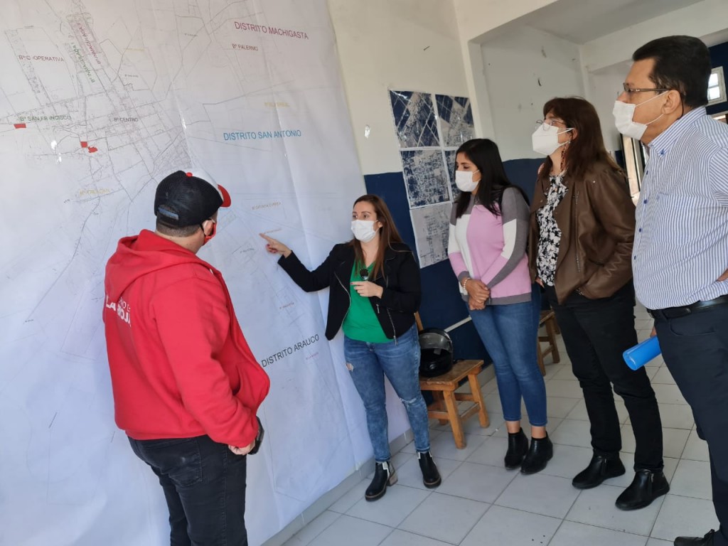Los integrantes del COE visitaron en primer lugar la ciudad de Aimogasta. Allí brindaron una capacitación a equipos técnicos de esa comuna destinados a realizar los controles de bioseguridad para combatir al virus. Estos equipos son quienes se encargan de realizar los recorridos en las calles y visitar a los comercios a fin de garantizar que se cumplan con las medidas de sanidad.