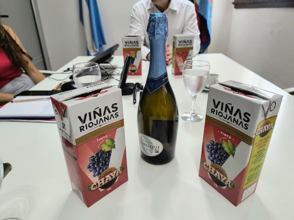En ese contexto, el gerente de La Riojana Cooperativa, Matías Caimi, presentó al ministro de Turismo y Culturas, Gustavo Luna, el nuevo packaging del tradicional vino “Viñas Riojanas”. Tanto en su versión blanco como tinto, el envase tetrabrik incorpora el logo oficial del Festival de la Chaya y un texto que destaca el valor simbólico y cultural de la fiesta, reconocida como una de las principales expresiones de La Rioja ante el país y el mundo.