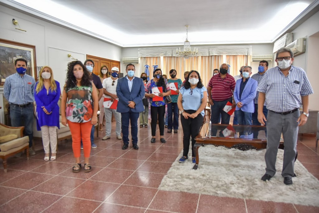 El gobernador entregó hoy en la Residencia, 10 beneficios previsionales a trabajadores y trabajadoras municipales. Los mismos se acogieron a la ley Provincial N° 10.291 mediante la cual se otorga el Adicional Jubilatorio Provincial a las y los empleados públicos que se jubilen.